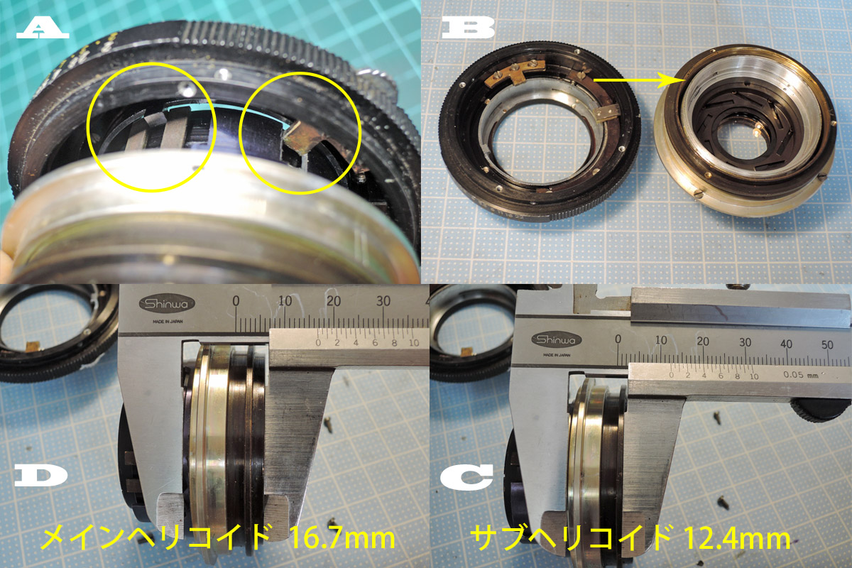 C: 無限遠状態でのサブヘリコイドの幅を測定しますが、これは個体差があるので参考程度にし、各自で実測して下さい。