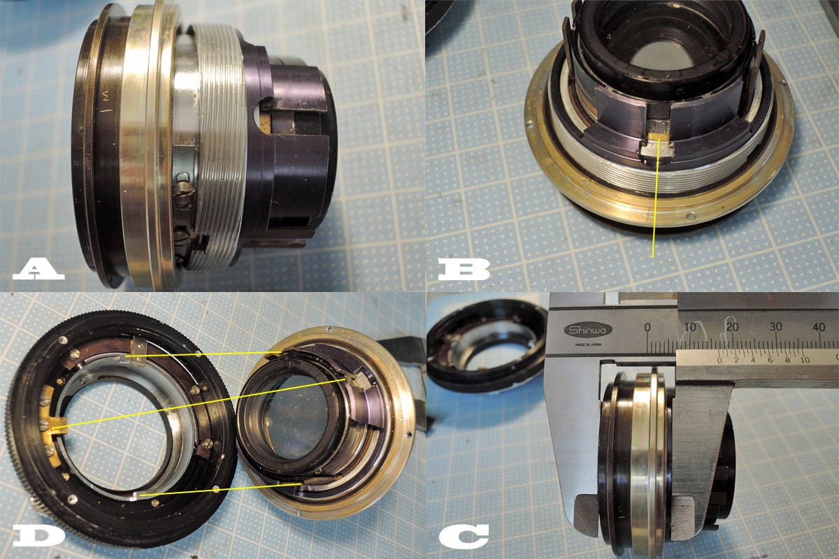 D: マウントと合体する時はここを組み合わせますが、絞りの方はマウントの後端内側を回しながら入れて下さい。