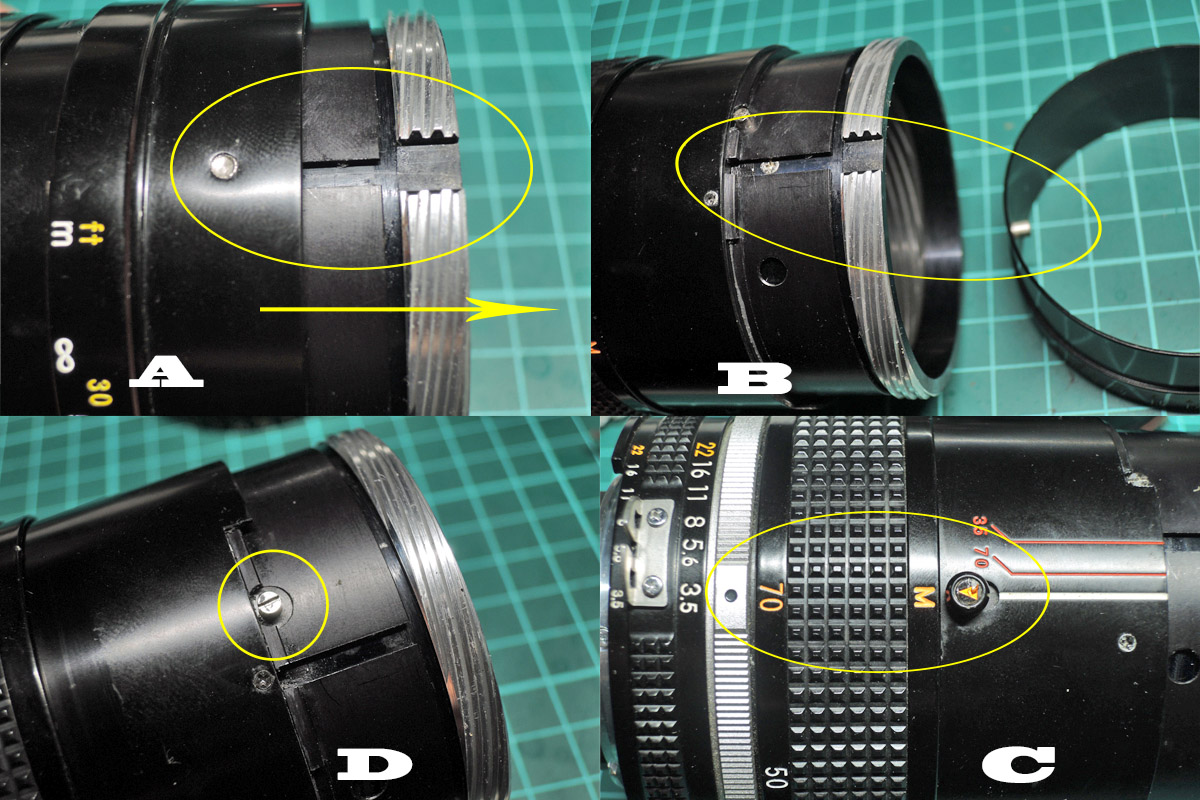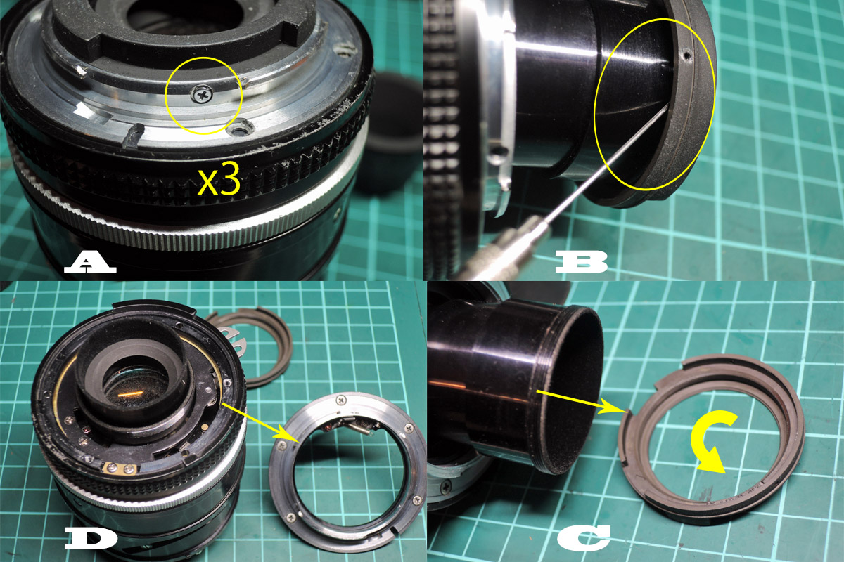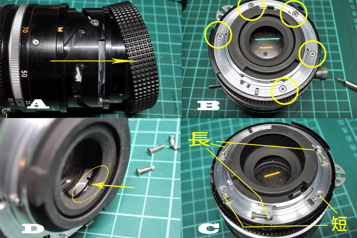 D: マウントの中間リングのネジ4個を外します。