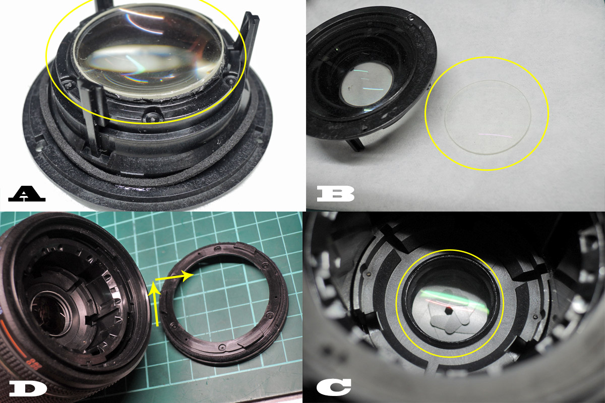 A: 2群レンズもハメゴロシになっているので、上記の方法でレンズを外して清掃します。